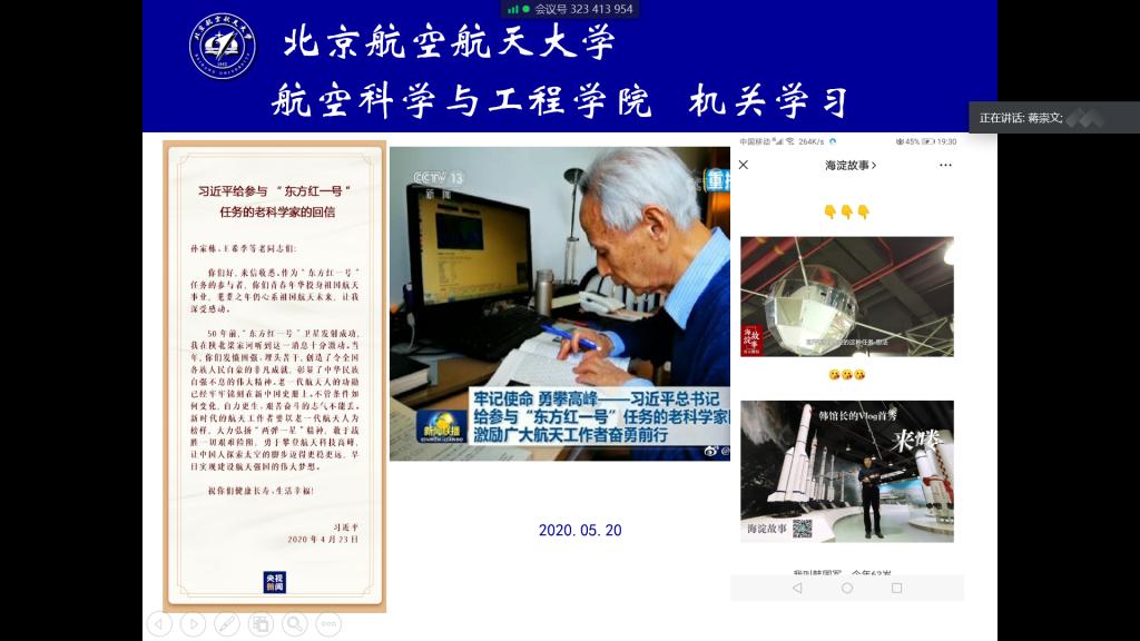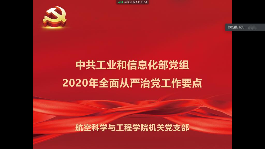 机关教职工在线开展“学习日”活动,机关共19名教职工集体学习了《中共工业和信息化部党组2020年全面从严治党工作要点》精神及习近平总书记给参与“东方红一号”任务的老科学家的回信。