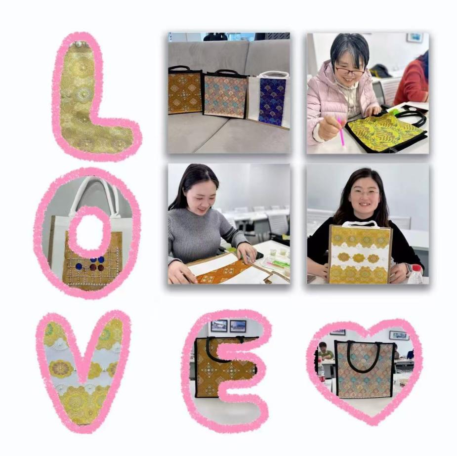 3月6日下午,“锦绣芳华”——2026年三八国际妇女节非遗宋锦手提包DIY手作体验活动如期举行,一场非遗文化与手工创意的美好邂逅就此展开。活动以非遗传承为核心,创新将宋锦这一国家级非物质文化遗产与现代生活相融合,让女教职工在亲手创作中感受传统技艺的魅力。作为中国三大名锦之一,宋锦以色泽华丽、图案精美、质地坚韧著称,活动现场,大家从宋锦贴片的摆放、粘贴到配饰点缀,每一步都精心细致、倾注心意,在沉浸式创作中领略宋锦的细腻质感与千年文化底蕴,不仅亲手制作出专属自己的手提包,收获了兼具实用性与文化意义的节日纪念,更在指尖流转间传承了中华优秀传统文化,涵养了文化自信。