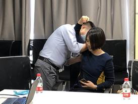 讲座当中,徐大夫和王大夫详细地介绍了颈椎腰腿疼痛相关的保健知识,为老师们进行自我调节提供了很多建议和帮助。同时两位大夫还现场采用筋柔骨正手法,为老师们进行颈部、肩部、腰部的调理,缓解了老师们肌肉、关节疼痛等问题。互动环节,大家踊跃提问,积极互动,专家还就人机工效老师提出的有关问题作了详细解答。