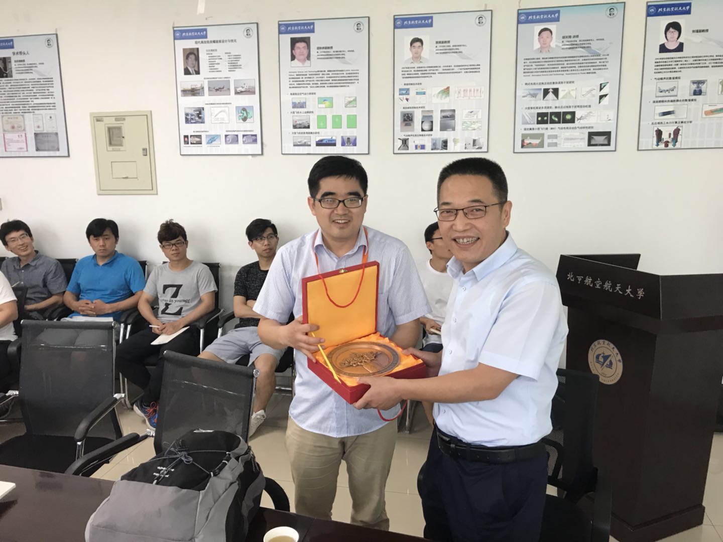 讲座开始前,郭昊副教授代表陆士嘉实验室向陈鹏研究员赠送了纪念品,并对陈鹏研究员进行了介绍。