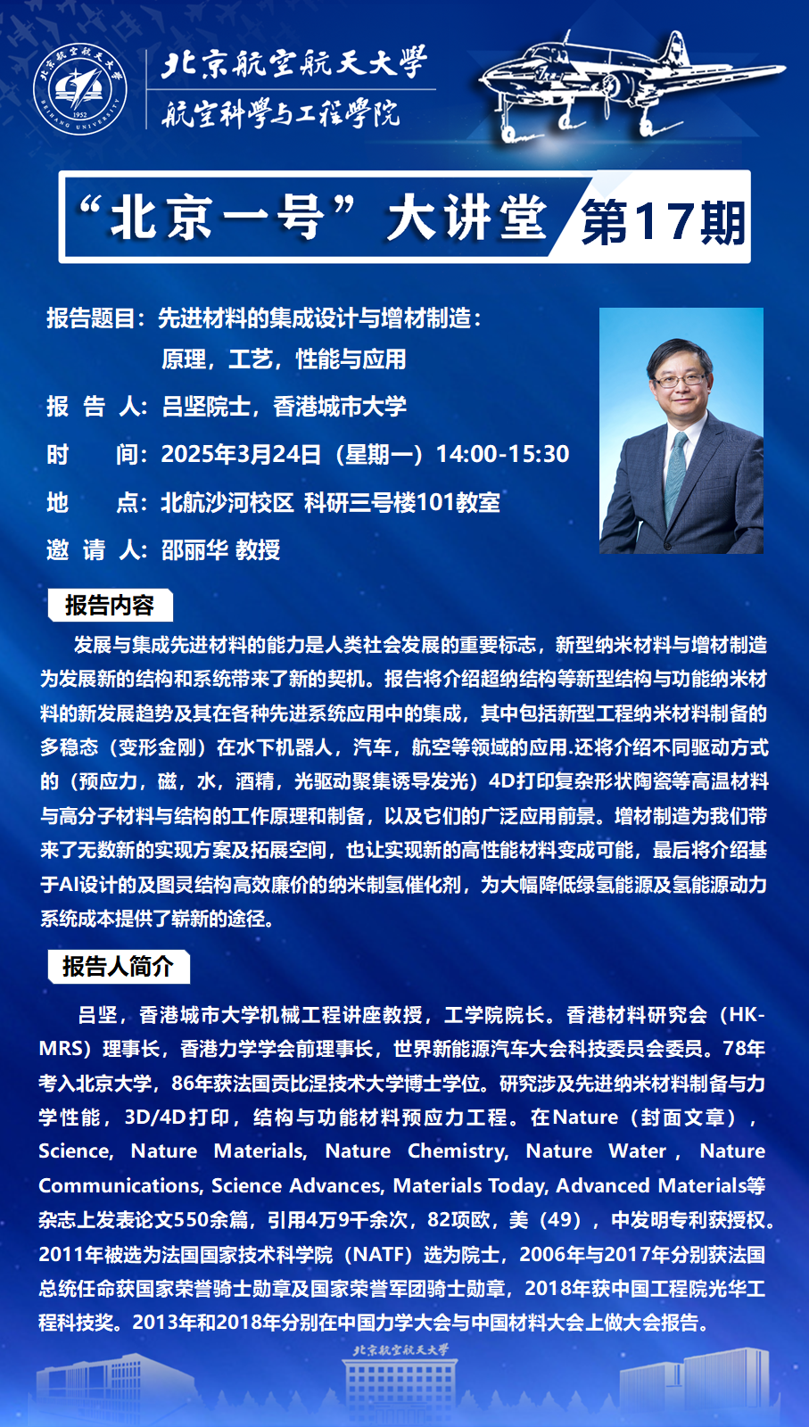 报 告 人:吕坚院士,香港城市大学