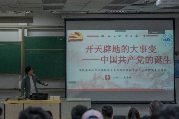 王章玮讲师的宣讲从近代中国社会与政党政治、马克思主义在中国的传播讲起,回顾百年前的近代中国,介绍中国共产党建党时的历史环境和社会思潮;接着围绕“南陈北李”相约建党,介绍中国共产党早期组织的孕育与发展;最后,从兴业路到南湖红船,带领同志们走进中国共产党第一次全国代表大会的故事,重温激动人心的历史时刻。