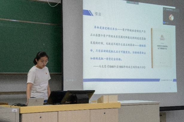 倪天璇讲师在讲革命精神的时候从马克思关于革命的论述开始讲起,宣讲主要包括了引言、革命精神的历史逻辑、革命精神为何永续流传和新时代的革命精神4个部分。倪天璇讲师指出,中国共产党革命精神是指党在领导人民群众进行革命、建设和改革实践过程中,在特定的历史时期和特殊的历史环境下形成的,集中体现中国共产党人政治觉悟、意志品质、思想道德和工作作风的一系列优良传统和革命风范,重点提到了西柏坡精神、特区精神。