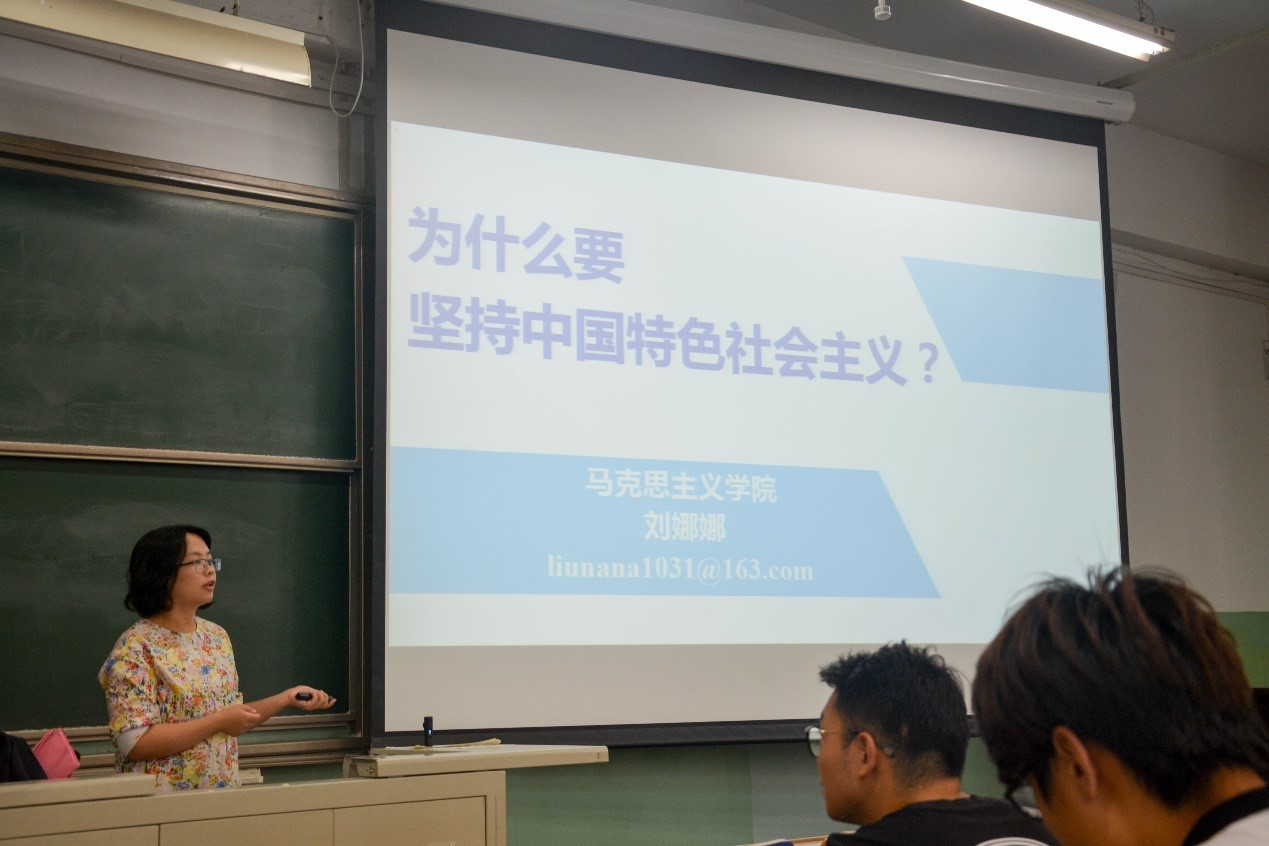 刘娜娜老师为2017级的本科生带来主题为“为什么要坚持中国特色社会主义”的讲座。