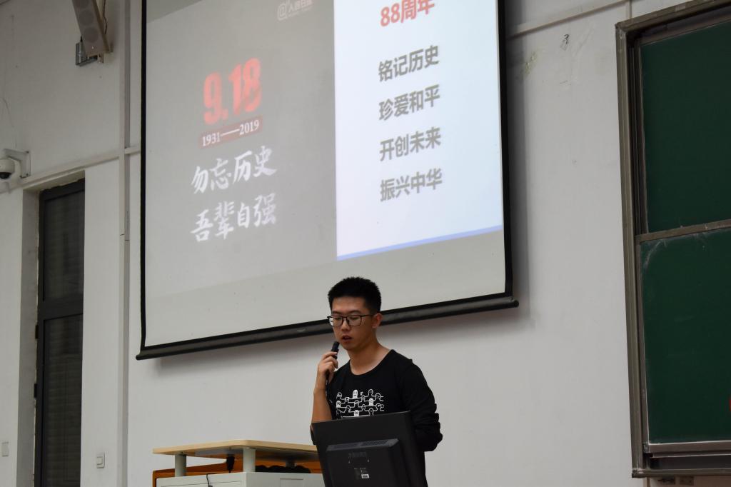 辅导员郦垚带领同学们对近期香港问题进行了回顾和思考,对同学们提出了热爱祖国、担当责任、服务社会、勿忘初心的希望。此外,对9.18事变进行了回顾,告诫同学们要铭记历史、珍爱和平、开创未来、振兴中华。