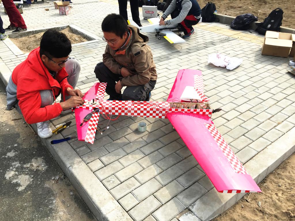 选手在试飞前调试飞机