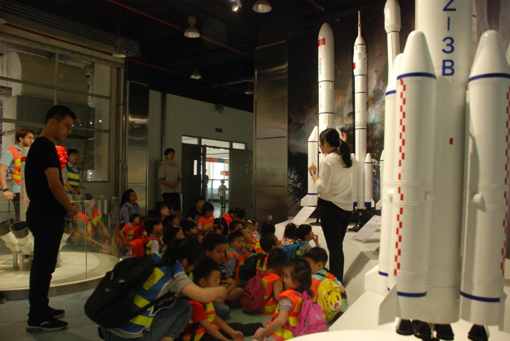 图3 讲解员为孩子们讲解运载火箭
