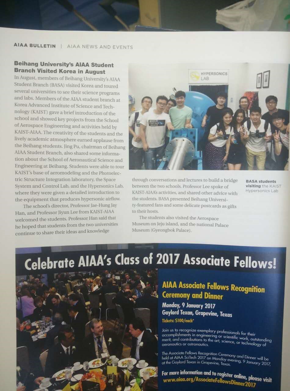 AIAA学生分会赴韩国交流活动的新闻登上了美国AIAA下属杂志AEROSPACE的2016年度专刊。
