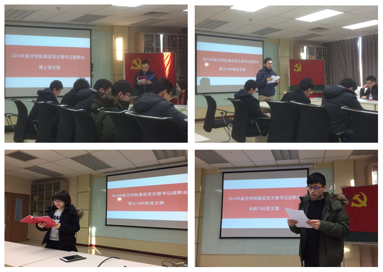 本科党支部、博士研究生党支部以及14级、15级和16级硕士研究生党支部书记分别对2016年度支部党建工作履职主要情况和特点、存在的主要问题及原因、下一步的工作思路和主要措施等方面进行了工作述职,并就党建工作中的闪光点、困难点等进行了深入交流与讨论。大家充分肯定了2016年度各学生党支部在党建工作方面所取得的成绩,同时也清醒地意识到在党建工作中仍然存在许多困难和不足,在以后的工作中需要继续克服困难、弥补不足,保证党支部向着更好的方向发展。
