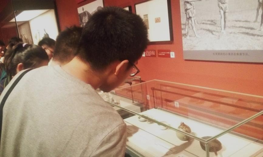 图3 同学们认真参观长征途中的历史文物