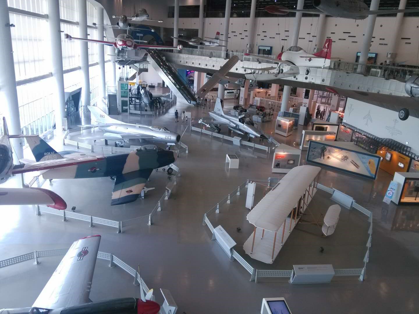参观完停机坪,我们马不停蹄的来到了航空馆内,希望可以看到F-15,F-16等三代战斗机以及韩国航空工业引以为豪的T-50教练机的实物模型,或者是童年心驰神往的黑鹰战机。但是事与愿违,中国也不会把现役的J-31,J-20或是L-15放到博物馆里。