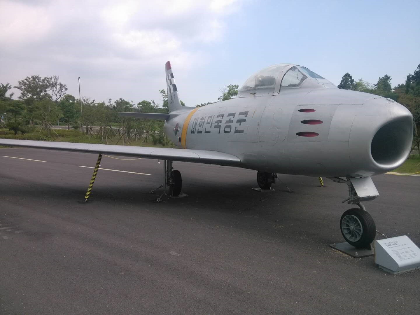 图所示为F-86佩刀战斗机,已从韩国空军退役。这类战斗机在朝鲜战争中立下了汗马功劳,与米格-15的对决让人惊叹,宣告着空战的喷气机时代已经来临。