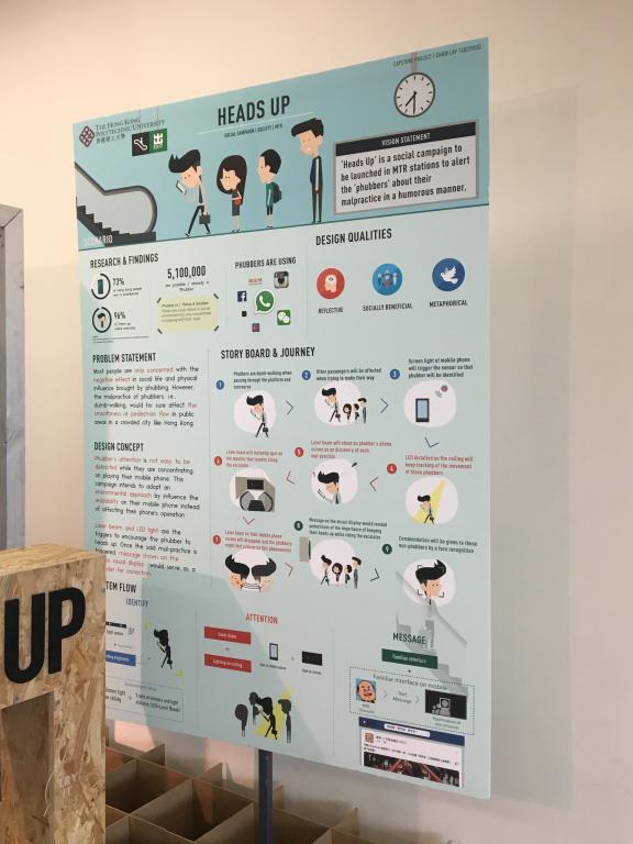 香港理工大学创新楼中的“理大设计”展览是我们此行的重点,展览展示的是同学们在生活中发现的问题及其解决方案或是一些创新、创意与思考,比如针对目前广大手机低头族的“HEADS UP”项目,提出了一些使用虚拟现实技术的解决方案,又比如“MEDIA”项目,将所需吃的药放入机器,机器封装每顿所需的药并按时提醒患者。此类项目展示了同学们对身边问题的思考,可以极大的提高大家的创新意识。看完展览后,能感受到理大同学善于思考,能发现问题并提出问题,对于生活有着十足的热情,思维活跃,游学小组成员一致认为博彩导航