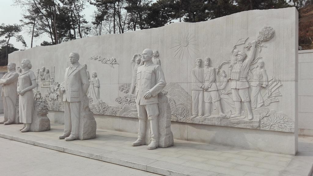刚入广场,首先映入眼帘的是石壁上毛泽东主席的题诗:“惊涛拍孤岛,碧波映天晓;虎穴藏忠魂,曙光迎来早”。两边的花岗岩墙壁上刻着到目前为止发现的当年为准备解放台湾而英勇牺牲的烈士英名。名字以阴文素镌,若隐若现,彰显其淡泊名利的高尚品格。看着墙上那一个个的烈士名字,党员同志们内心都非常沉重,那种敬佩之情也油然而生。无名英雄纪念碑是以吴石、朱枫、陈宝仓、聂曦同志为原型的英雄雕像建于广场中央,,纪念碑文镌刻在雕像其后,充分的展现了先烈默默奉献所做出的伟绩。