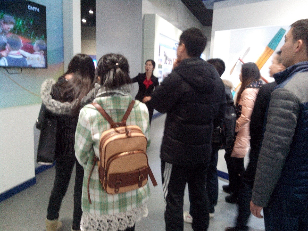 同学询问。讲解员结束时跟同学们说,很少有看到像我们班这么认真的参观团,好多参观团都是直接不停的往前走想着快点结束,而我们班则非常认真,表现出对校史的浓厚兴趣。