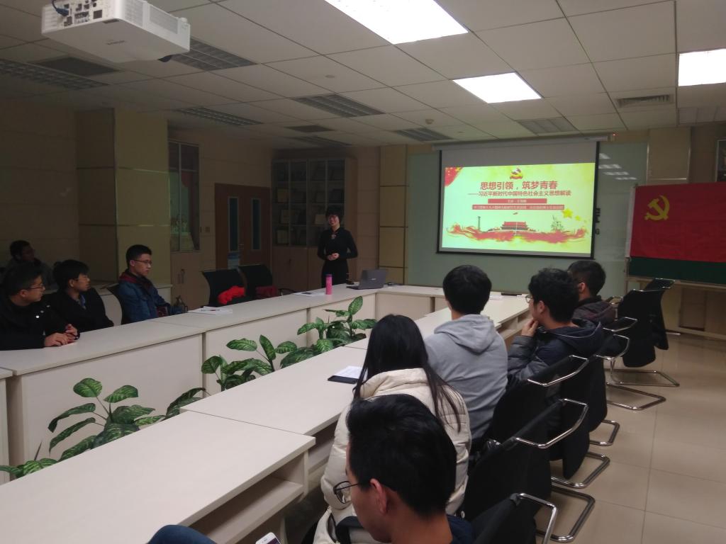 研究生宣讲团的王雪晴讲师为参会的党员们作了题为“思想引领,筑梦青春——习近平新时代中国特色社会主义思想解读”的报告。
