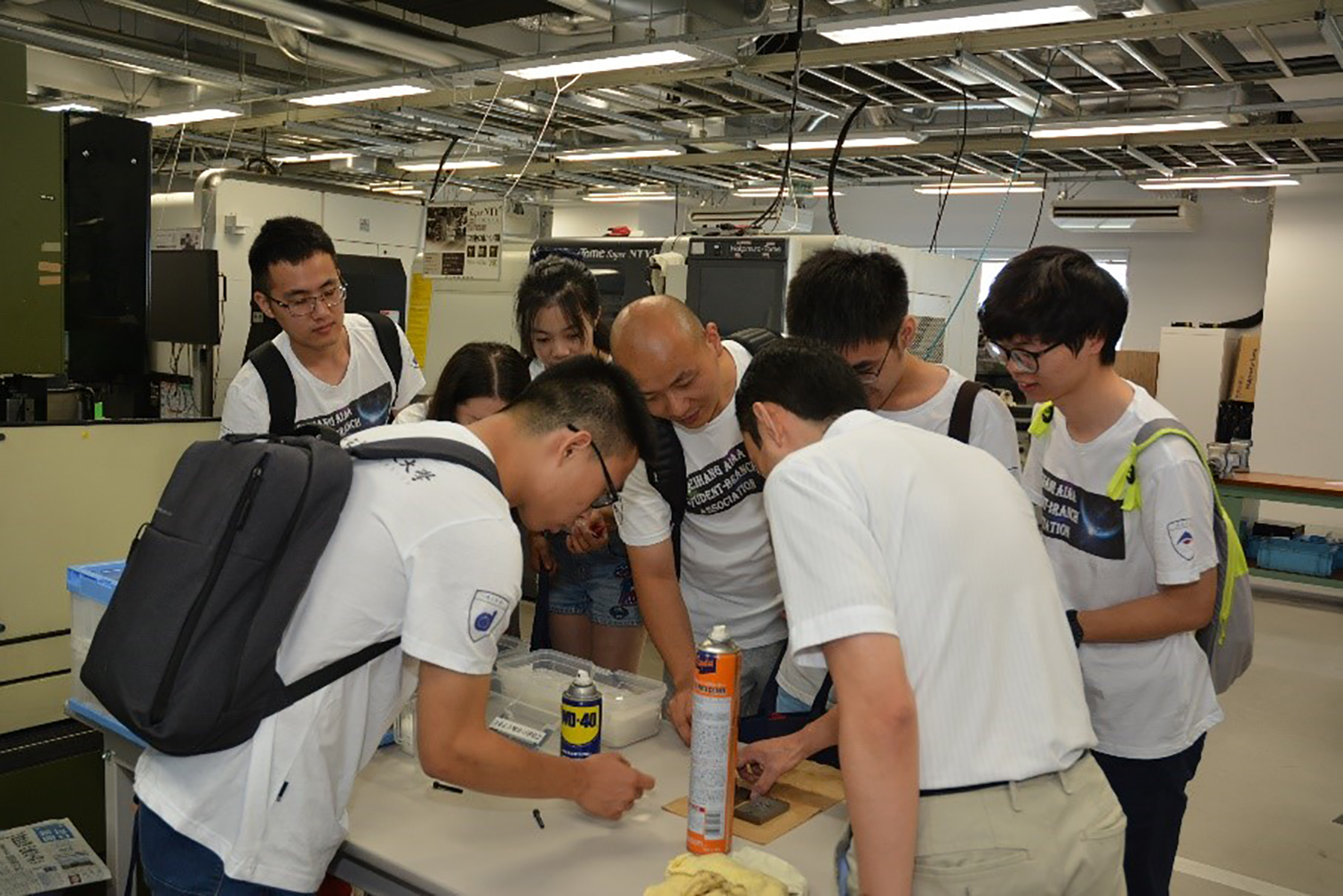 随后,CENYA ISHIGAMI 教授带我们参观了庆大的机械加工中心,与国内很多大学的加工中心差别最大的一点在于,他们机械加工设备的使用申请手续非常方便,学生们经过快捷的申请即可使用包括基础加工设备、数控机床等进行零件的设计加工,极大方便了机械等相关实验室的研究需要。