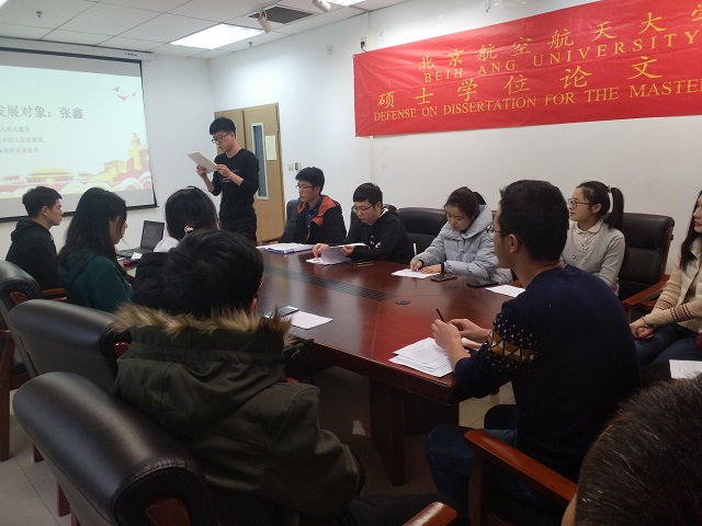 硕士17052党支部在新主楼C812召开预备党员发展大会。辅导员张志涛同志,党支部全体党员和三位发展对象参加了会议,会议支部书记付静伟主持。