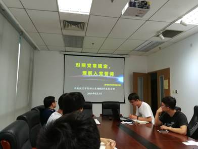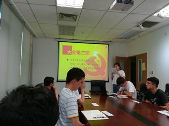 党课之后,由严鹏、朱梦瑶两名同志分别就学习内容向大家进行了汇报。严鹏同志的汇报内容是《关于加强和改进中央和国家机关党的建设的意见》的学习心得汇报,严鹏同志先从《通知》的发表原因出发,讲述了中央和国家机关的重要性,然后以七大意见、二十五条细则为切入点向同志们介绍了《通知》印发的目的、原因和内容,从内容和逻辑上的内在关系出发,全面地分析了加强中央和国家机关党的建设的重要性。