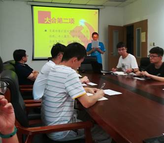 奏唱国际歌后,耿坤昊同志首先介绍了到场的党员人数与正式党员人数,本次会议应到党员17人,实到13人,4名请假党员按照规定提前提交了正式书面意见,符合会议召开的相关人数规定,会议有效。支部提议由张名远同志担任计票人,袁金沙同志担任监票人。