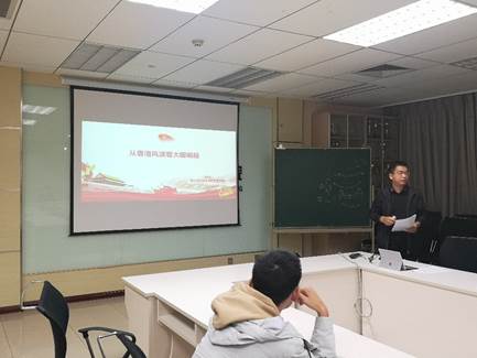 张山同志针对最近几个月持续升温的香港问题,给大家作了《从香港风波看大国崛起》的报告。今年的香港风波已经持续了8个月之久,并且目前正呈现愈演愈烈的态势,张山同志从事件的起因说起,逐步深挖其背后原因包括香港经济、产业、生活成本等方面的自身原因,以及中美贸易战大背景下的外部原因两部分。并指出香港暴乱之所以能持续这么长的时间,是香港的司法制度、教育模式、政治体制以及国际环境共同影响造成的。香港问题是今年的热点问题之一,主权问题关乎我们每一个中国人的根本利益,对香港风波的学习和讨论让同志们对这次事件有了更加全面的认识与理解。