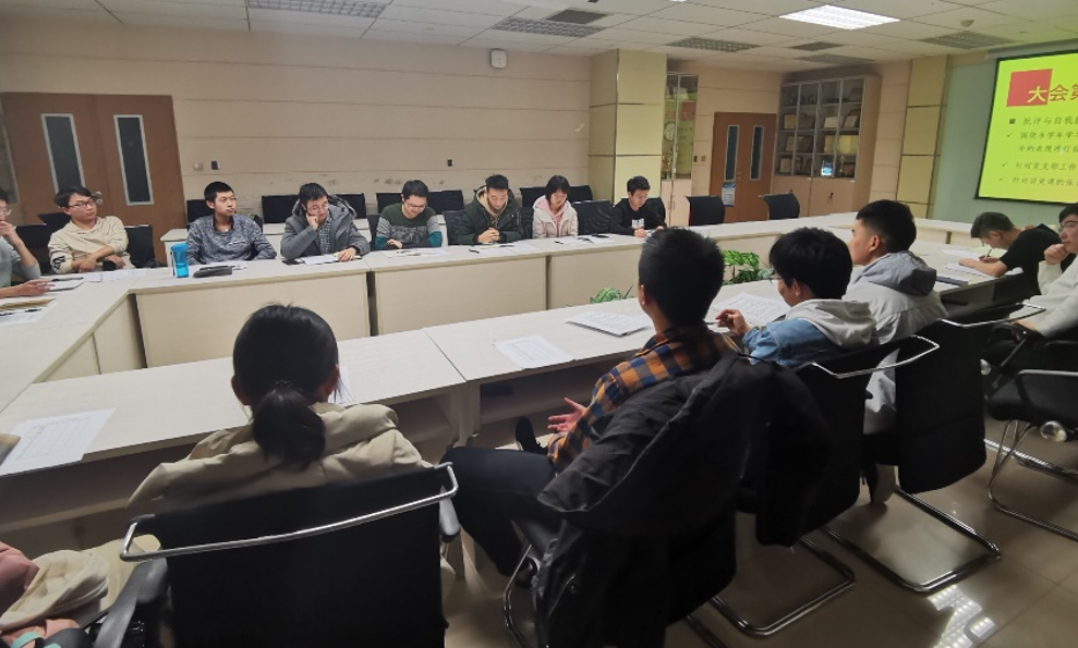 硕士生18054学生党支部于新主楼C708会议室召开2019年组织生活会。此次组织生活会主要包含:学习习近平新时代中国特色社会主义思想、党支部支委述职、民主评议党支部班子、开展批评与自我批评以及民主评议党员等共五项内容,会议由支部书记张山同志主持,辅导员付尊儒同志列席参加。