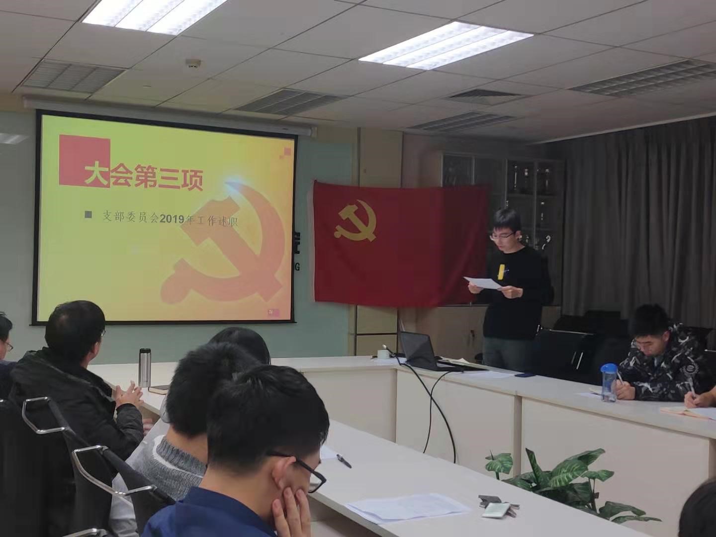 紧接着,支部委员们进行年度工作述职。支部书记耿坤昊同志总结2019年支部组织生活,回忆了反腐倡廉、青年学习等主题活动,使支部同志能够会前有学习,会中有思考,会后有收获。纪检委员吴辉阳同志讲到2019年同志们的支部活动出勤率较2018年有显著提升,并再次强调请假同志仍需要学习会议内容,并提交总结报告。组织委员袁金沙同志讲到支部2019年成功发展预备党员6名,党费无人拖欠的良好情况。宣传委员张名远同志强调大家要重视新闻稿撰写及照片拍摄工作。
