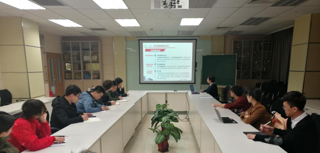 学生党员骨干组织力提升培训班在新主楼C708会议室开展了第三次培训课程,党务办公室专职组织员孙振佳老师作了以《规范组织生活,建好建强党支部》为主题的党务工作培训。党建辅导员、新任党支书、党支部组织委员、连任党支书代表等近二十人参加了此次培训。