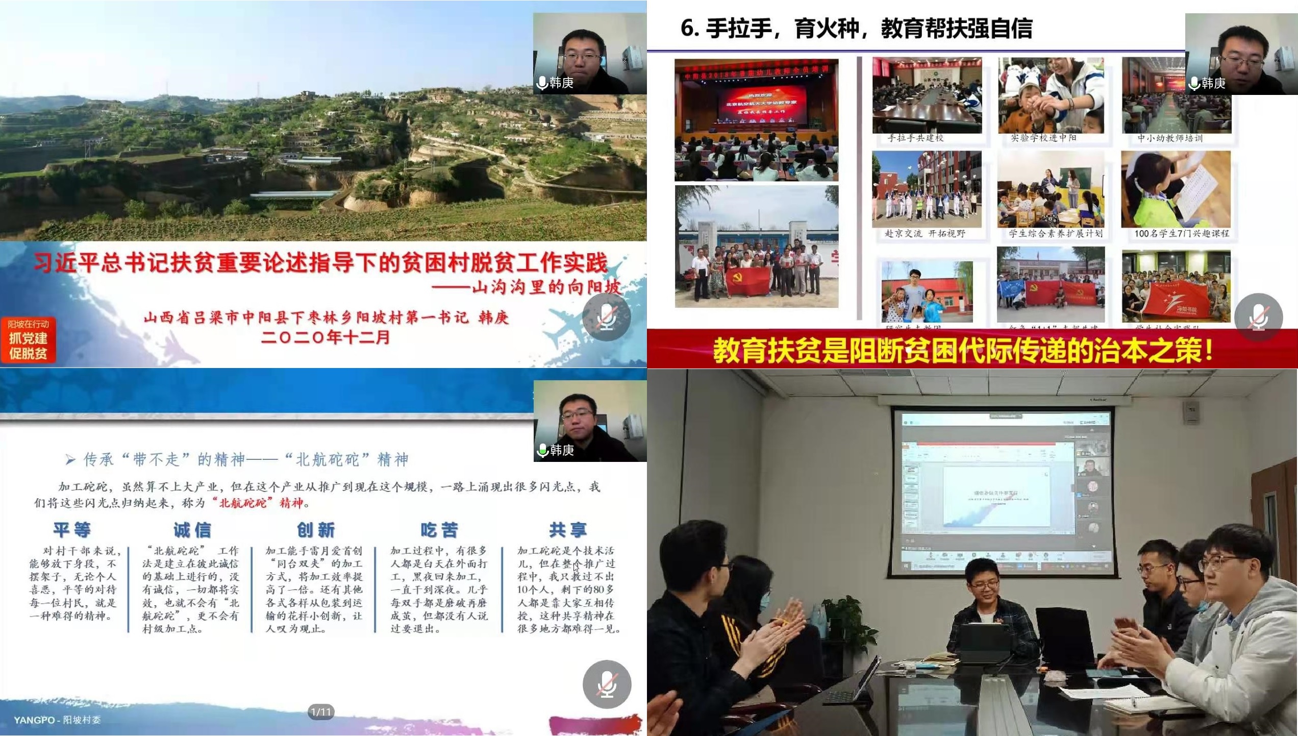 博士生20052学生党支部全体党员在新主楼C708会议室进行了脱贫攻坚摄影展线上参观活动,召开党创基金活动的总结会议,主题为“善始善终,善作善成——聚焦扶贫攻坚的基层实践”的党创基金活动至此圆满结束。