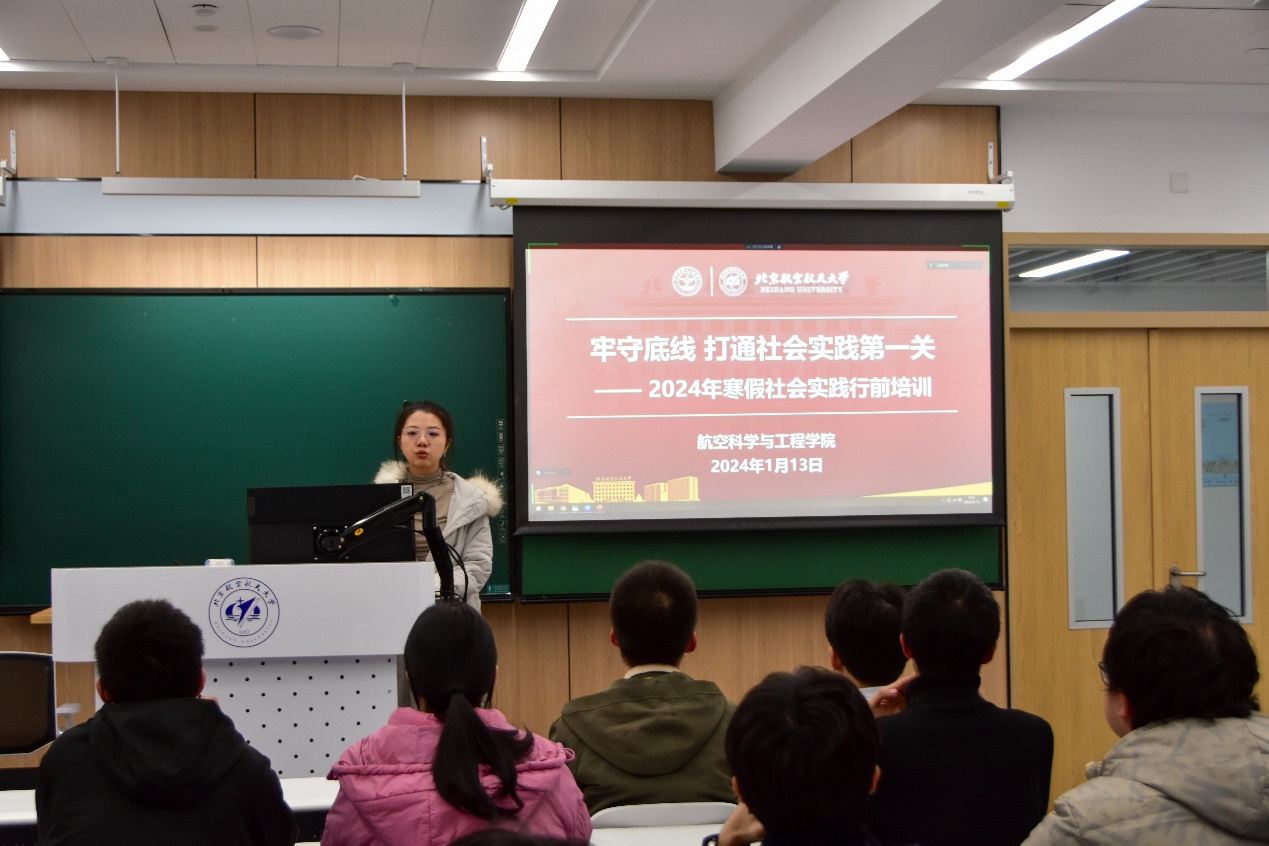 半脱产辅导员范安淇向全体参会人员阐述了此次活动的目的,并就实践开展中需注意的安全问题给各位队长进行培训。同时,敦促各位实践队长坚持每日按时打卡安全报备,就实践行程做好充分规划,及时关注路况和天气信息,切实保障实践活动安全顺利的进行。