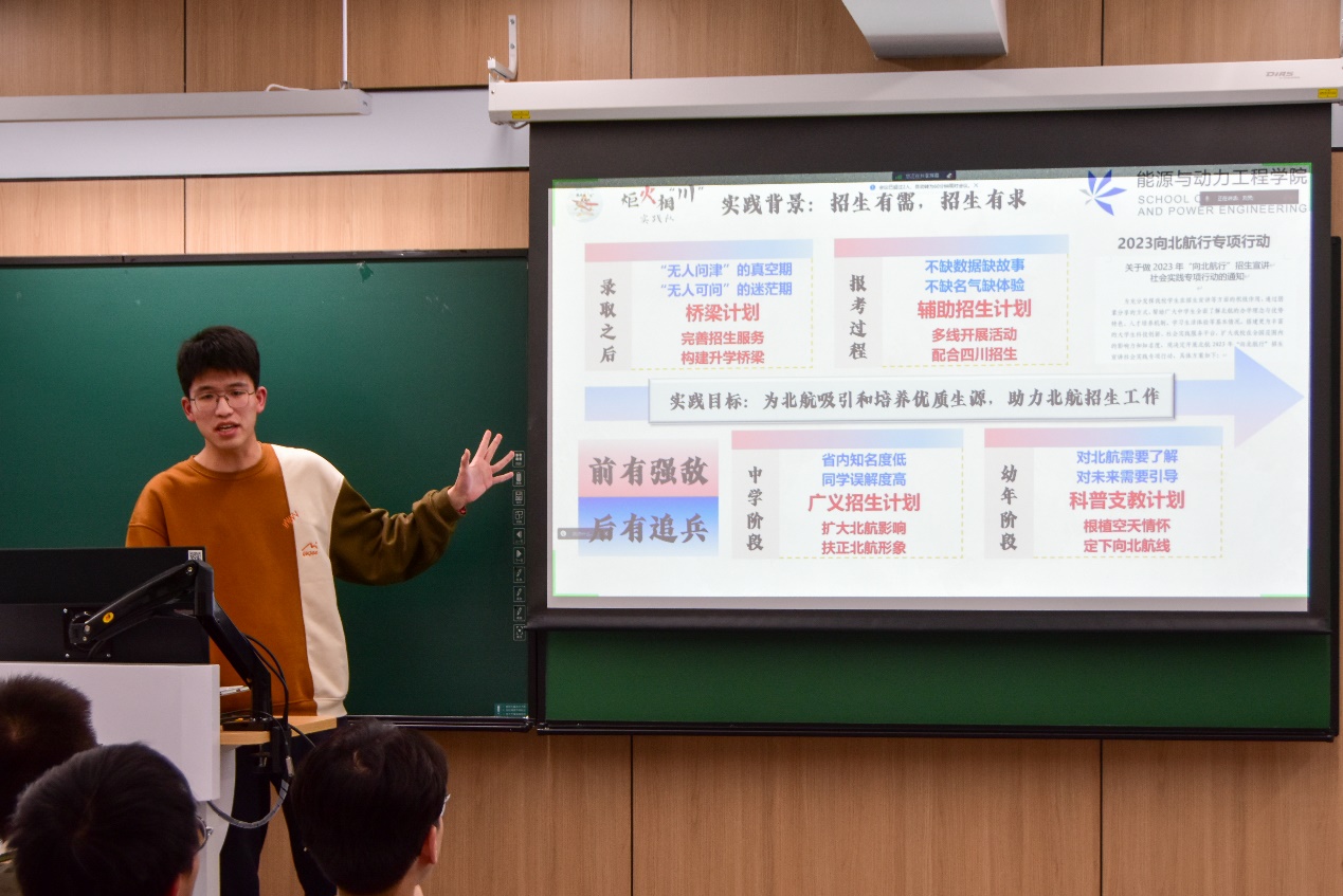 炬火相“川”实践队队长张峻彩以“打造链式招生,领航一路华章”为主题讲述博彩导航