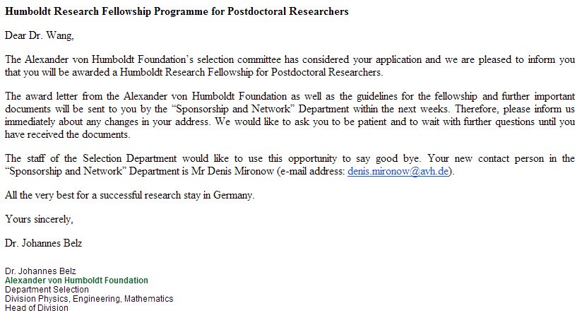 博彩导航 王冲博士获得2017年“洪堡研究基金”资助