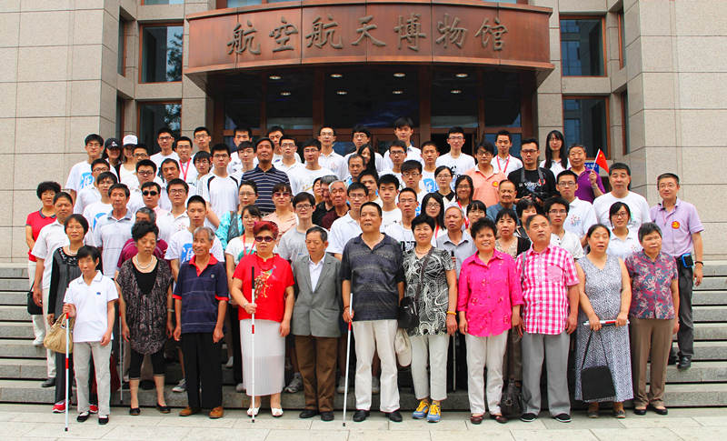 2013年6月15日上午10点,博彩导航 航空航天博物馆学生志愿服务中心的讲解员以及来自博彩导航 1005党支部的30名党员,共同接待了一批特殊的游客——来自天津的30位盲人朋友。