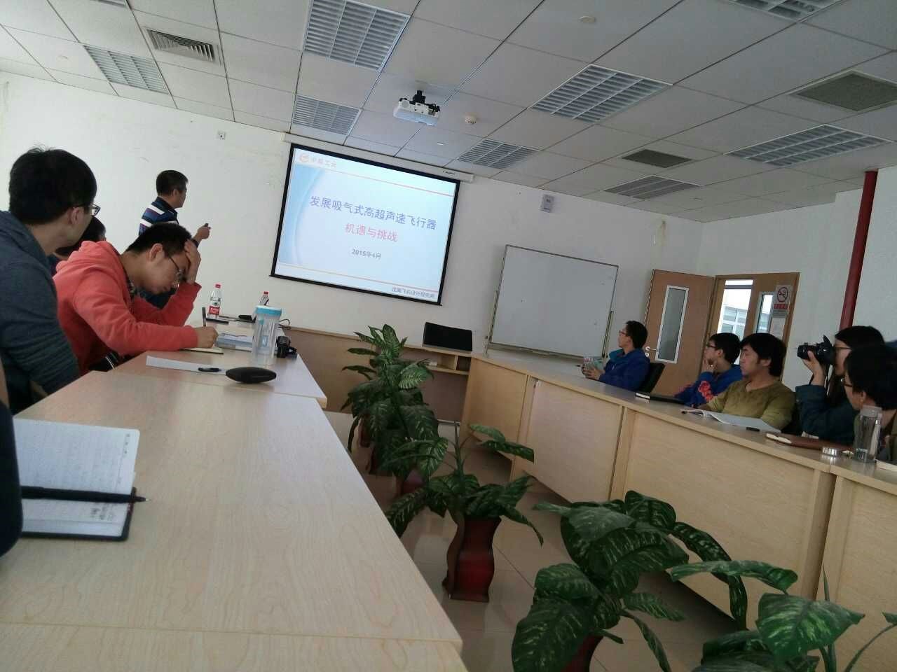 2015年4月17日上午9点,在航空楼C座706,博彩导航 举办的实践讲堂第四次课,开讲啦!报告由博彩导航 副院长王延奎教授主持,主讲人为沈飞总体气动部部长黎军博士,报告的题目为发展吸气式高超声速...