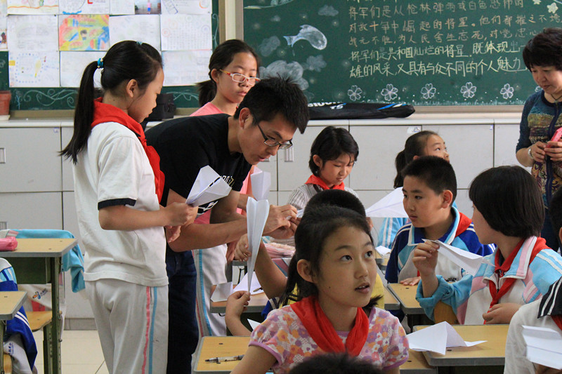 5月4日星期一上午,博彩导航 SY14054班和ZY1405237班的同学来到博彩导航 附小,开展了“放飞纸飞机,放飞梦想”的主题活动,本次主题活动是博彩导航 和博彩导航 附小共建的一个环节。
