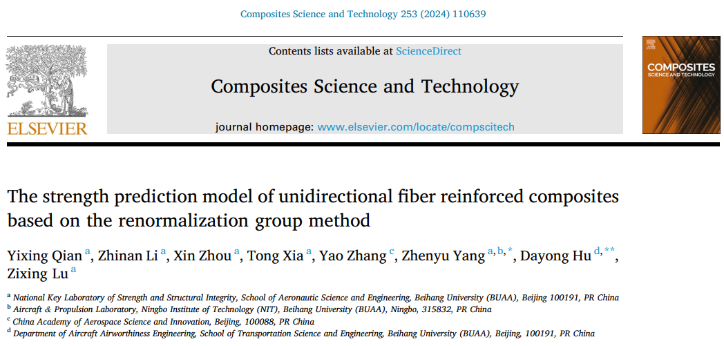 杨振宇副教授团队在国际复合材料领域顶刊《Composites Science and Technology》上发表复合材料强度预测模型最新研究成果